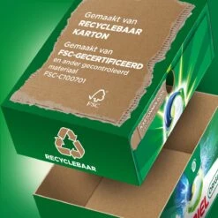 Ariel All in 1 pods Original Clean & Fresh zijn effectief bij hardnekkige vlekken vanaf de 1e wasbeurt, zelfs in koud water. Ze zijn gemaakt in Frankrijk en ontworpen voor koud water met de unieke Cool Clean-technologie. Was kouder met Ariel pods: kouder wassen helpt om elektriciteit en dus CO2 te besparen. Het helpt stoffen ook langer te beschermen (in vergelijking met wasprogramma’s met warm water). Bij contact met water lost het pods-laagje volledig op om krachtige vlekverwijderende technologieën vrij te geven en Ariel’s diepe en sterke reiniging van All in 1 pods Original Clean & Fresh te bieden. Daarnaast kunnen de Ariel wastabletten nu helpen plastic te verminderen dankzij hun recyclebare Ecoclic-kartonnen doos. Het is gemaakt met 70% gerecyclede vezels en bevat maximaal 5% plastic, ontworpen om je pods te beschermen.