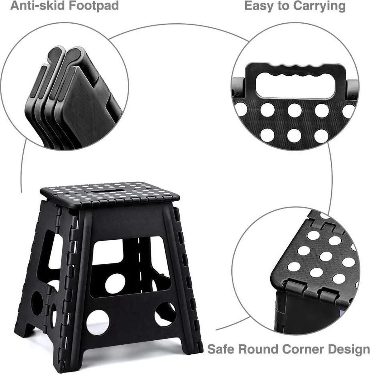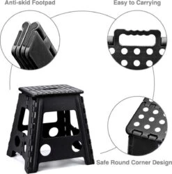 Doordat het krukje vouwbaar is, is het heel makkelijk op te bergen zodat het product niet in de weg staat. Verder is het krukje niet heel groot waardoor het zelfs uitgeklapt weinig ruimte in neemt als het ergens staat. Ook heeft het een sterk ontwerp omdat het krukje een gewicht tot 130 kilogram kan houden. Het wordt ook geleverd met een ingebouwde handgreep in Curve-vorm, die uw handen beschermt tegen krassen. Gemakkelijk te dragen, zodat u de opstapkruk overal mee naartoe kunt nemen.