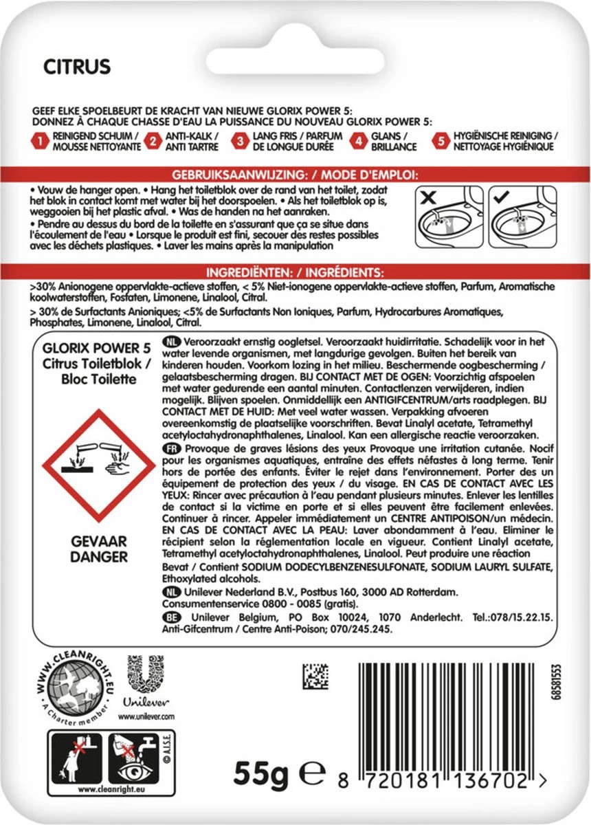 Glorix Power 5 Toiletblokken – Citroen – 7 X 2 Stuks – Voordeelverpakking