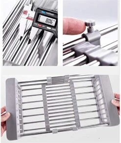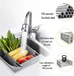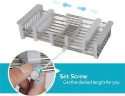 IBright Verstelbare Keukenrek – Gootsteen Mand – Afdruiprek – Vergiet – Verstelbaar In Lengte – Uitschuifbaar – RVS Grijs