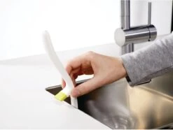 Met de afwasborstel Edge van Joseph Joseph was je eenvoudig al jouw vuile vaat af! Dankzij de harde haren zijn jouw vuile borden in een mum van tijd schoon en de geïntegreerde panschraper zorgt ervoor dat ook jouw pannen zo schoon zijn. Na gebruik hang je de borstel eenvoudig via de gootsteensteun op aan de gootsteen. Hierdoor loopt het overtollige sop en water makkelijk weg in de gootsteen. Jouw afwasborstel is hiermee niet alleen snel schoon, maar bespaart ook nog eens ruimte! Ben je op zoek naar een andere kleur? De afwasborstel is ook te koop in het wit!