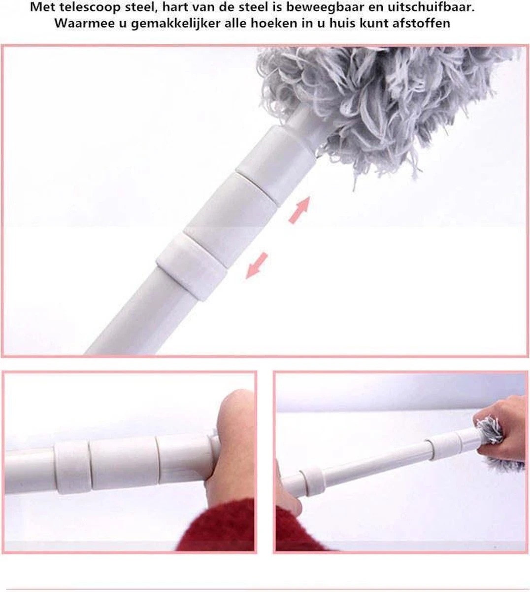 Plumeau/met Telescoopsteel/uitschuifbaar/microvezel Buigbare Borstelkop/9 X 126cm Max-lengte179cm