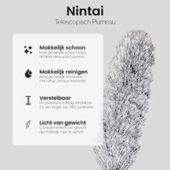 Plumeau Uitschuifbaar Tot 280cm – RVS – Telescopisch – Plumeau Met Telescoopsteel – 360° Flexibel
